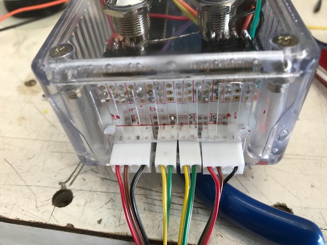 The rest is pretty straightfoward. I put it in a little clear Hammond box (part number 1591CTCL) that I got from Digikey. I love these little boxes – I like to see the guts of the project and don’t need to cut a hole for the display.