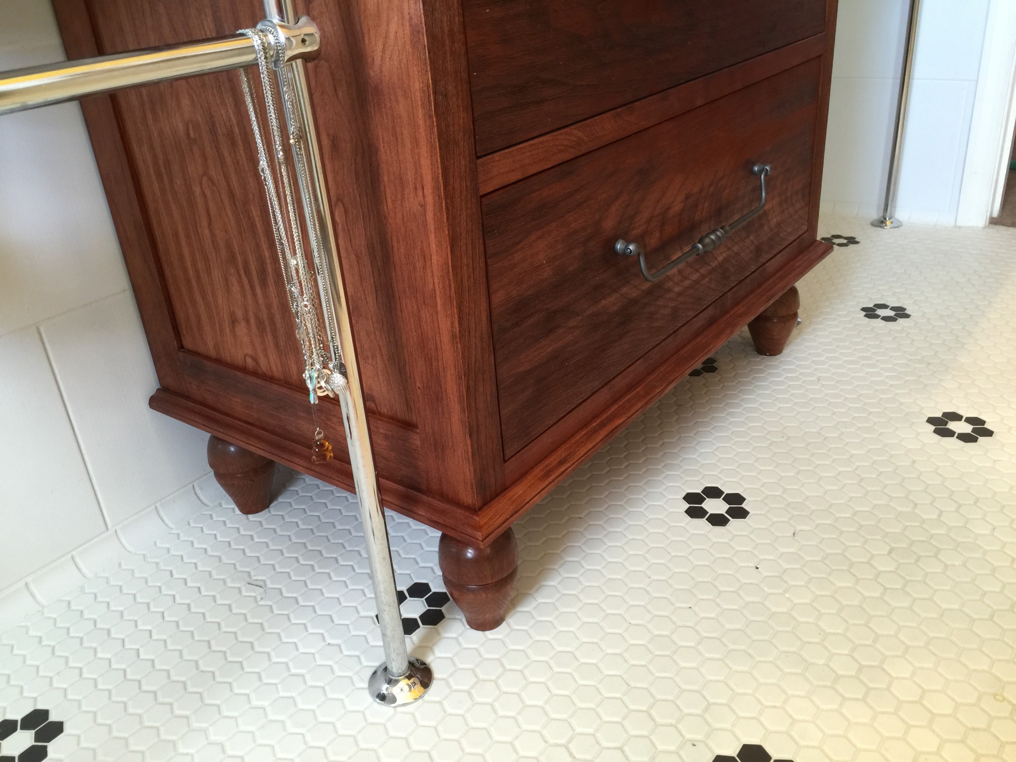 Also, this was the first time I tried my hand at wood turning – I made the four feet for the cabinet. Despite my best efforts, all four feet turned out a little different. Anyway, I guess that shows that it is a custom piece of furniture!